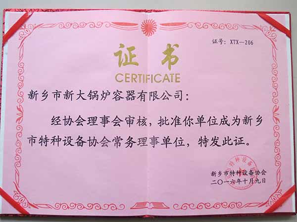 恭喜新鄉市新大鍋爐容器有限公司成為新興市特種設備協會常務理事單位